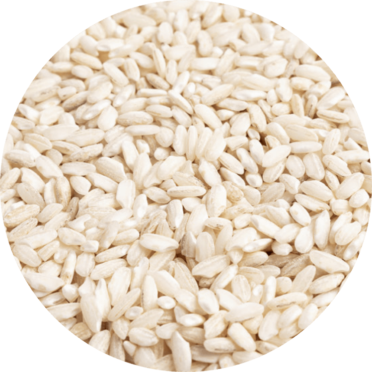 Grano medio y perlado, rico en amilosa. Resiste muy bien la cocción lenta y el removido constante.